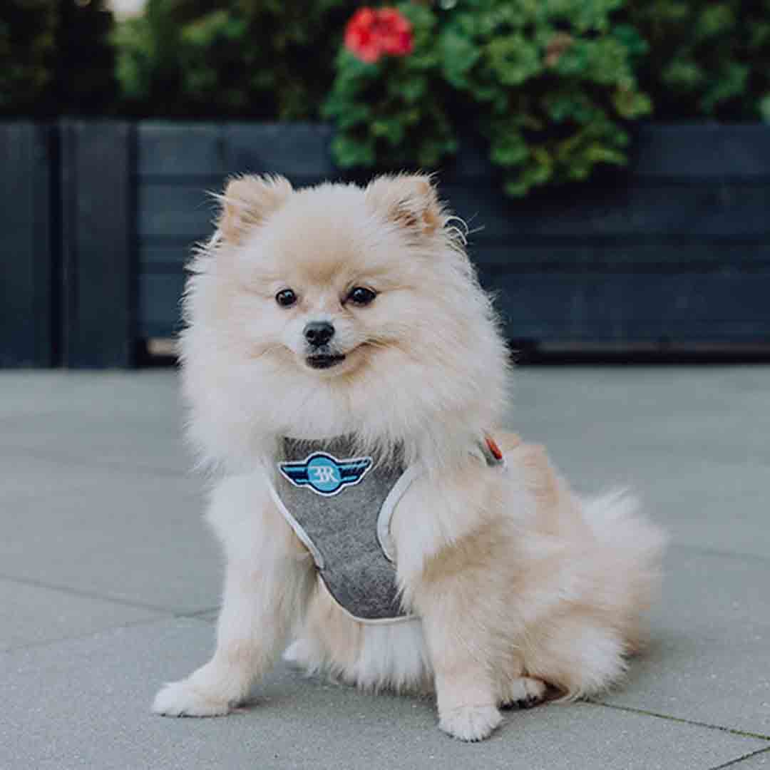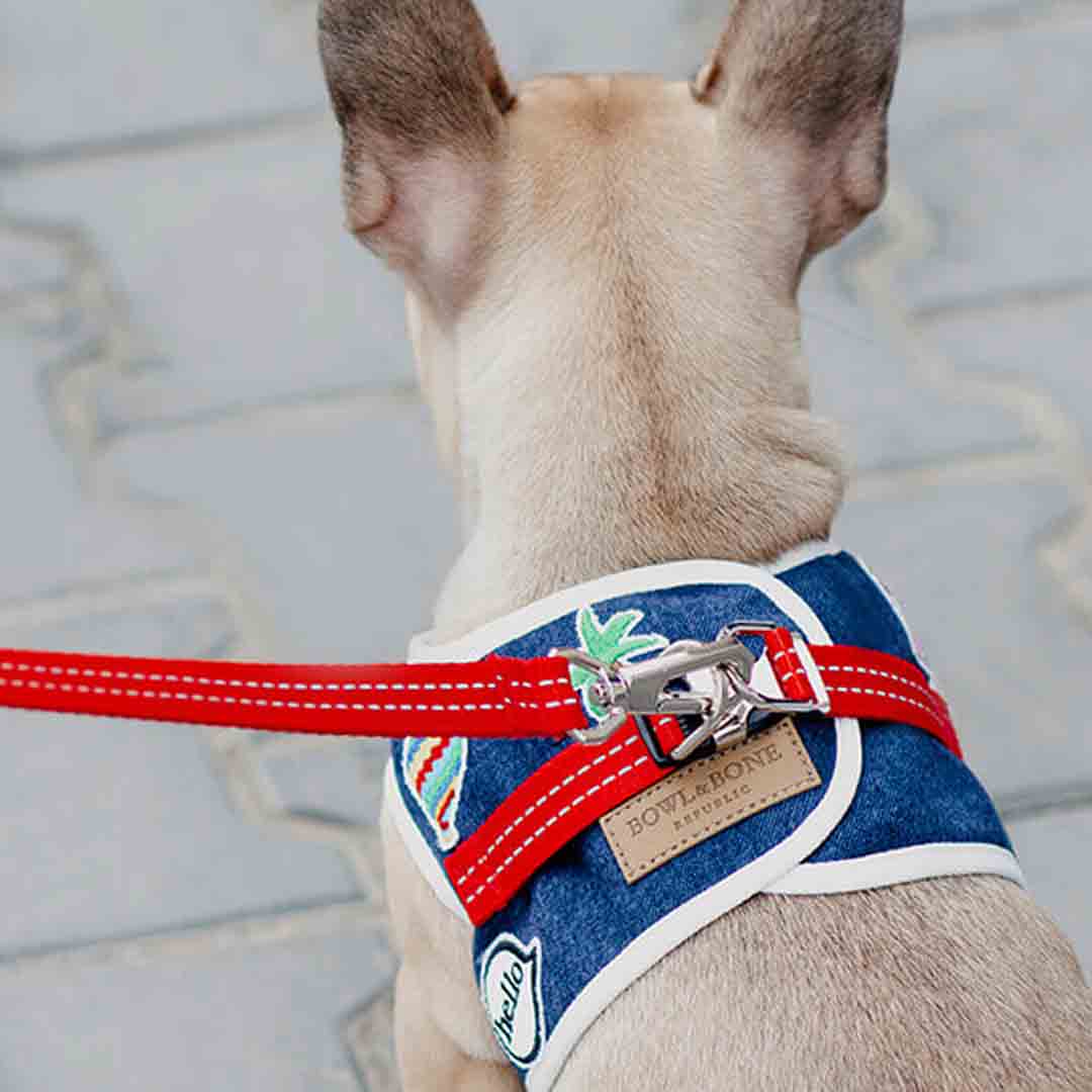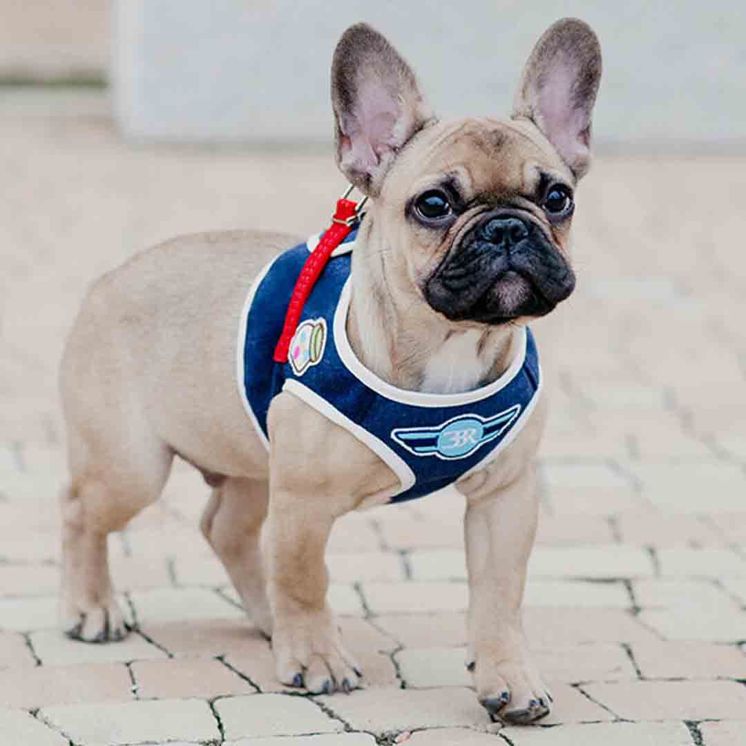 Bowl and Bone Republic® DENIM vest modna oprsnica za pse iz jeansa svetlo modre barve.