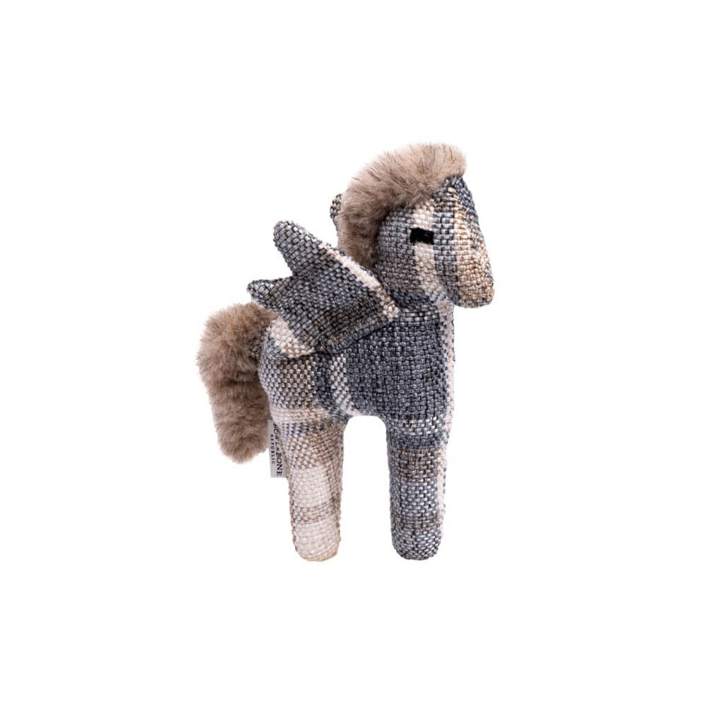 Barva igrače pritegne pozornost živali. Zahvaljujoč zanimivi teksturi zunanjega materiala, bujni grivi, izvirni obliki simpatičnega samoroga, pes v njem v dolgih urah najde prijatelja, med katerim bo zagotovo večkrat preizkusil svojo moč.
