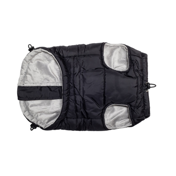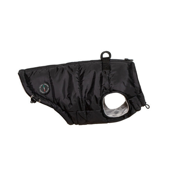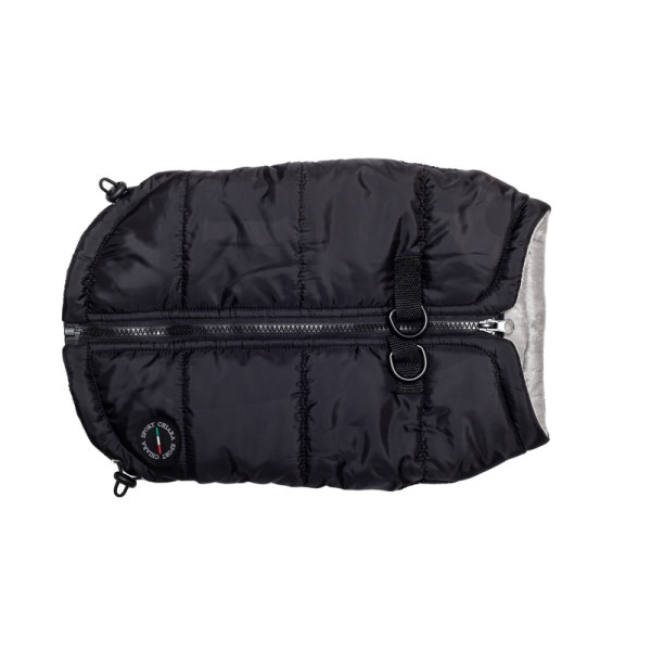 Prešita zimska jakna z integriranimi obročki za pritrditev na povodec. Enostavno oblačenje zahvaljujoč zadrgi na hrbtni strani. Dolžina jakne je nastavljiva.