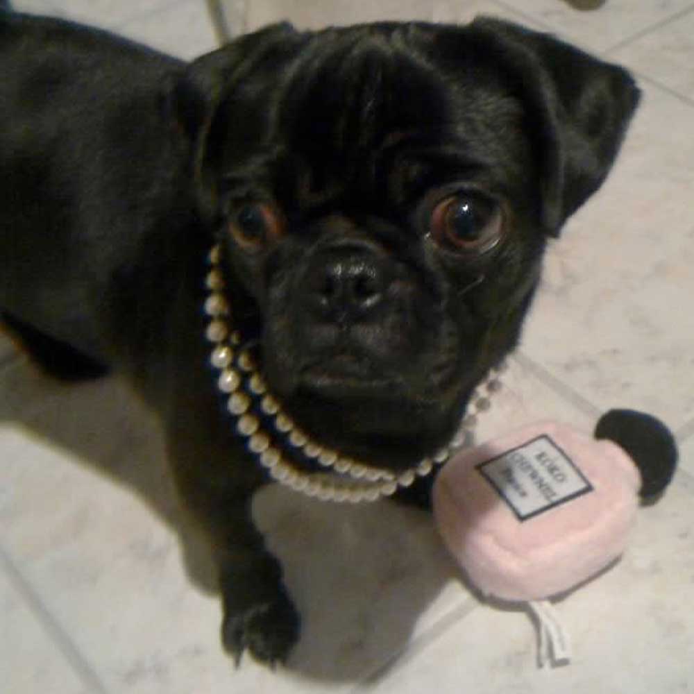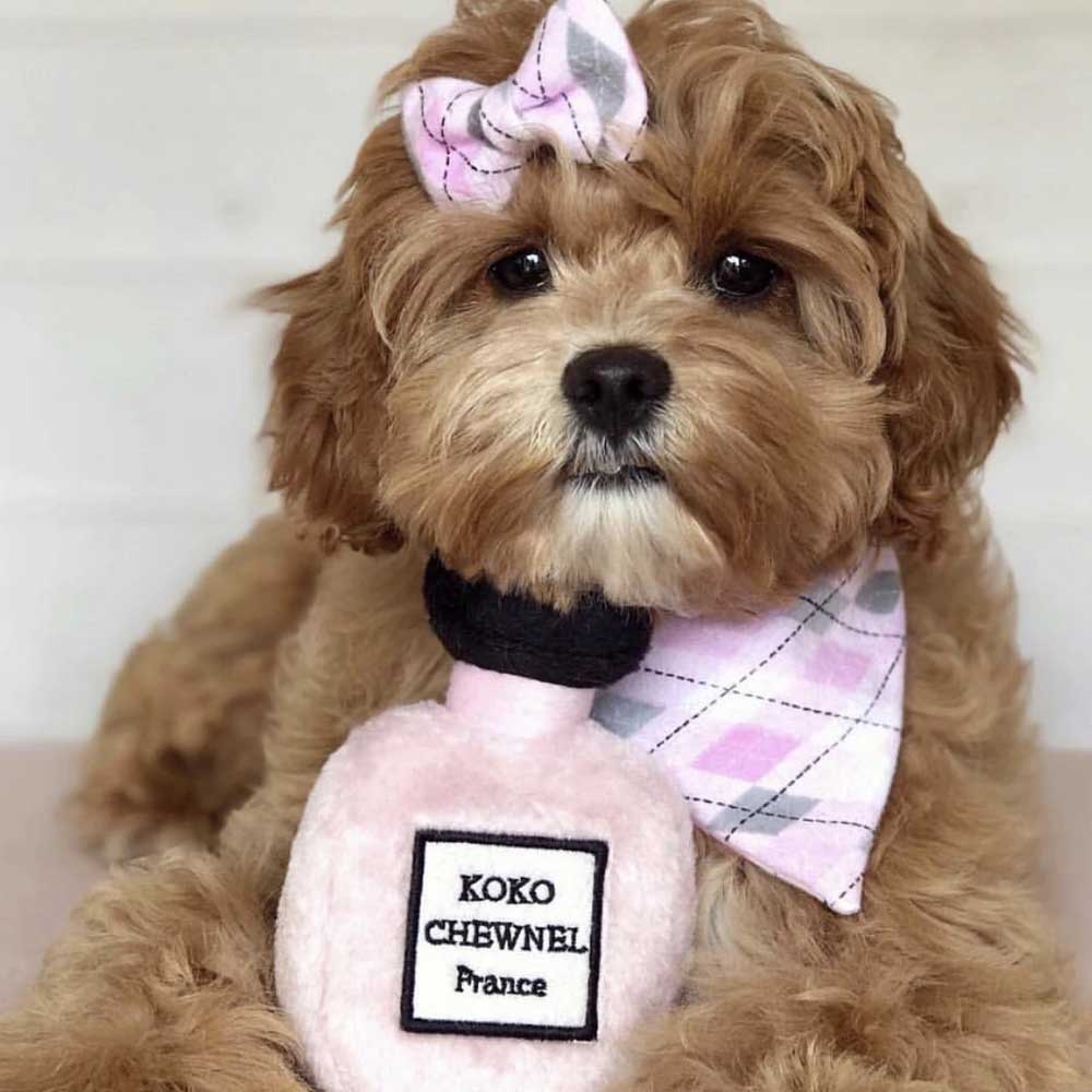 Igrača v slogu ikoničnega ženskega parfuma Coco Chanel – odlično darilo za rojstni dan vašega psa. Koko Chewnel je absolutni “must have” za vsako psičko.