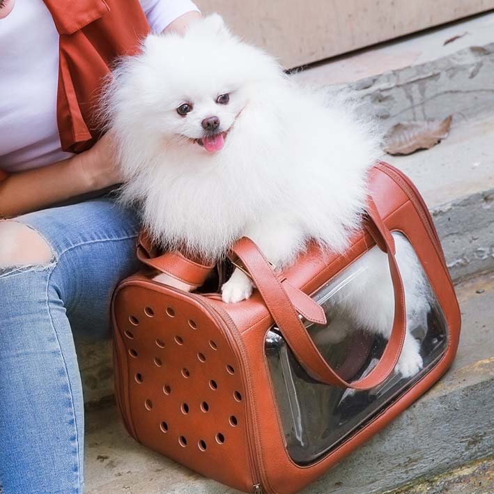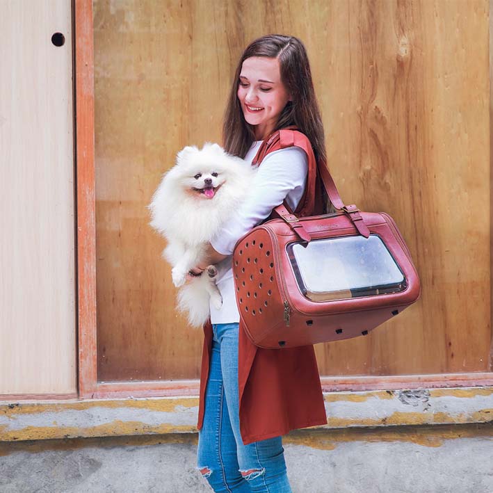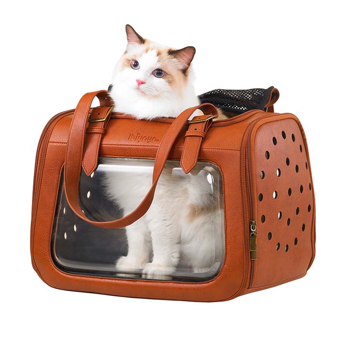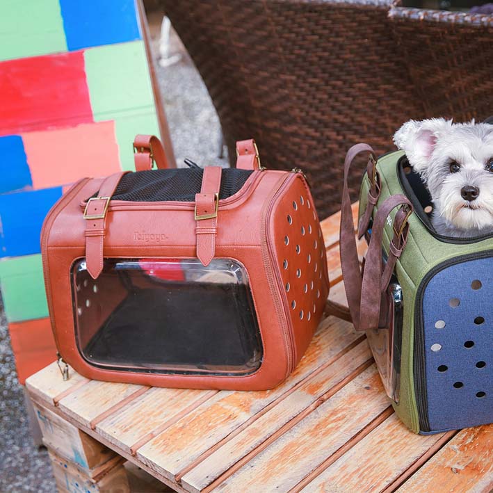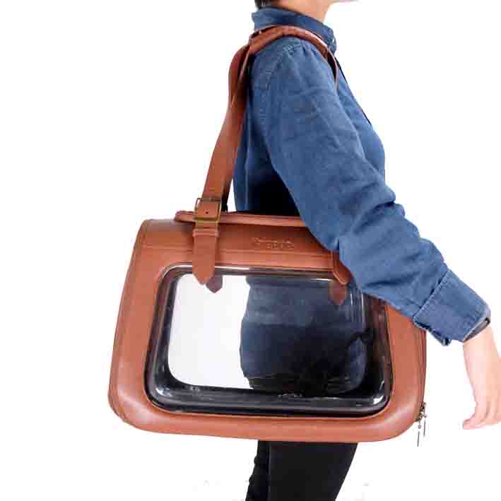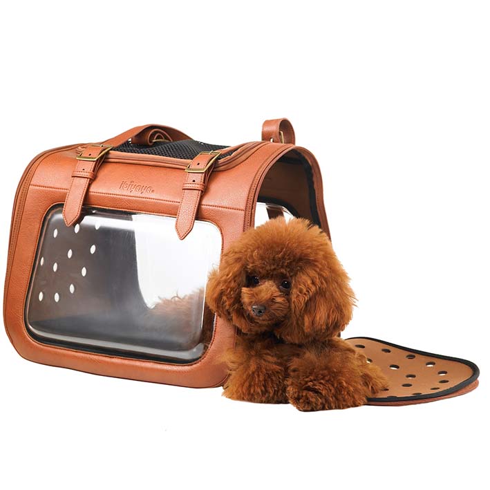 Ibiyaya® PORTICO DELUXE torba za nošenje živali iz umetnega usnja – rjave barve