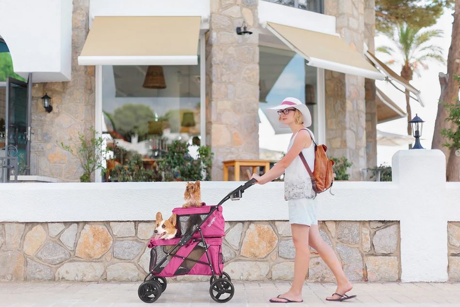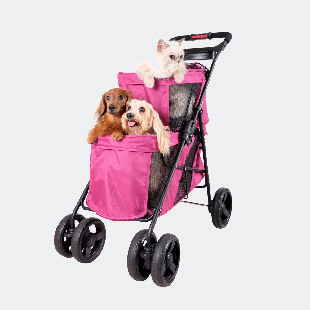 Ibiyaya® Voziček DOUBLE DECKER – za 2 ali več ljubljenčkov – roza barve