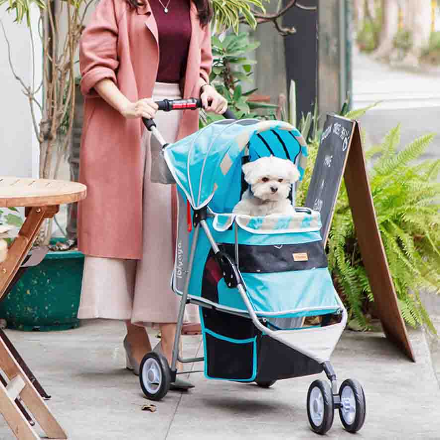 Ibiyaya® Voziček MATTE EDITION STRIPES za hišne ljubljenčke – modre barve