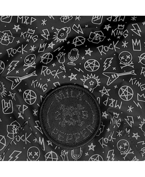 Črn vodoodporen material z rock&roll dizajnom, svetlo sivim ekskluzivnim tiskom