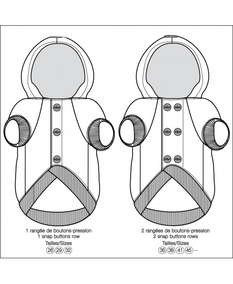 Ena vrsta gumbov od velikosti 23 do 32 Dvojna vrsta gumbov od velikosti 35 do 45L