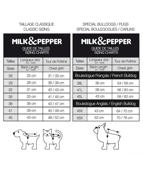 Nasvet: Pravilno velikost izberete tako, da izmerite obseg prsnega koša kužka. Ta se mora ujemati z velikostjo, ki je navedena v preglednici.