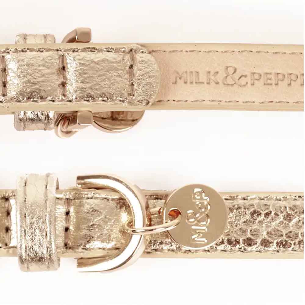 MILK&PEPPER modni pasji povodec PHYTON zlate barve iz umetnega usnja – dolžine 120 cm.