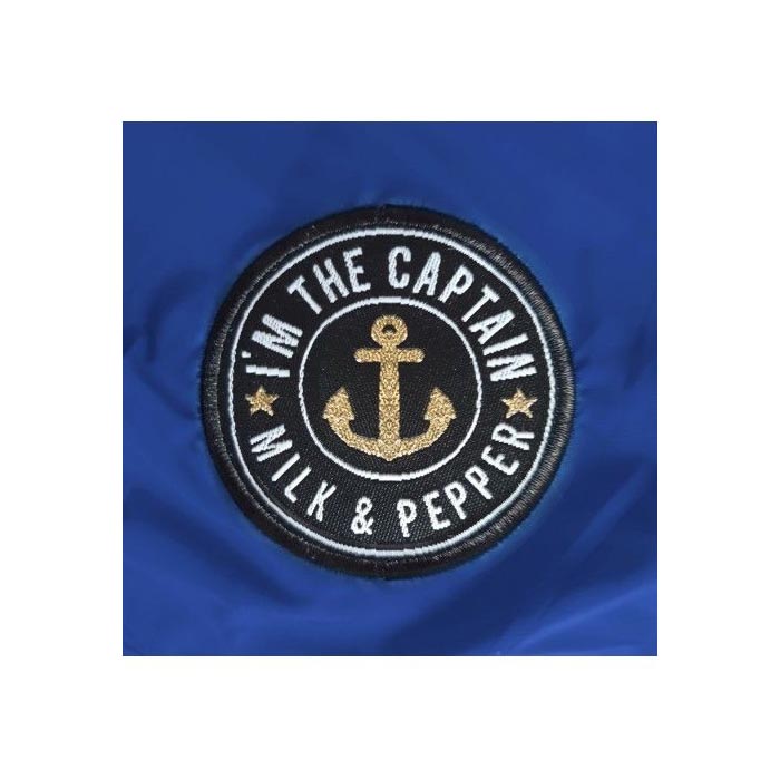 Etiketa “I’m The Captain Milk & Pepper” na spodnjem delu hrbta