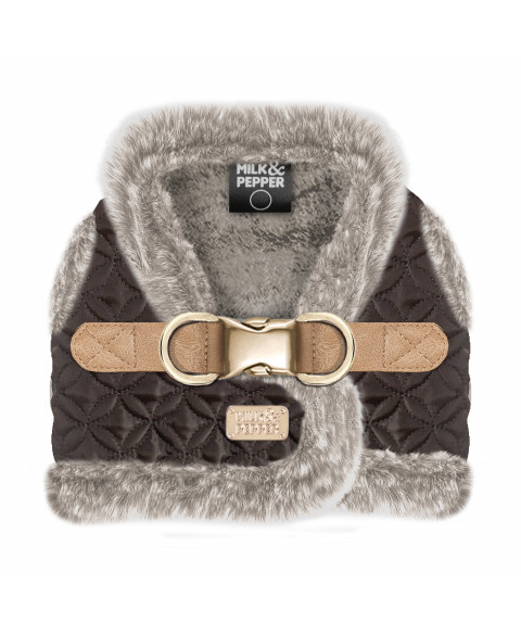 Oprsnica za majhne in srednje velike pse v naravnem/taupe zelo mehkem umetnem krznu – Podloga in obroba iz naravnega/taupe zelo mehkega umetnega krzna.