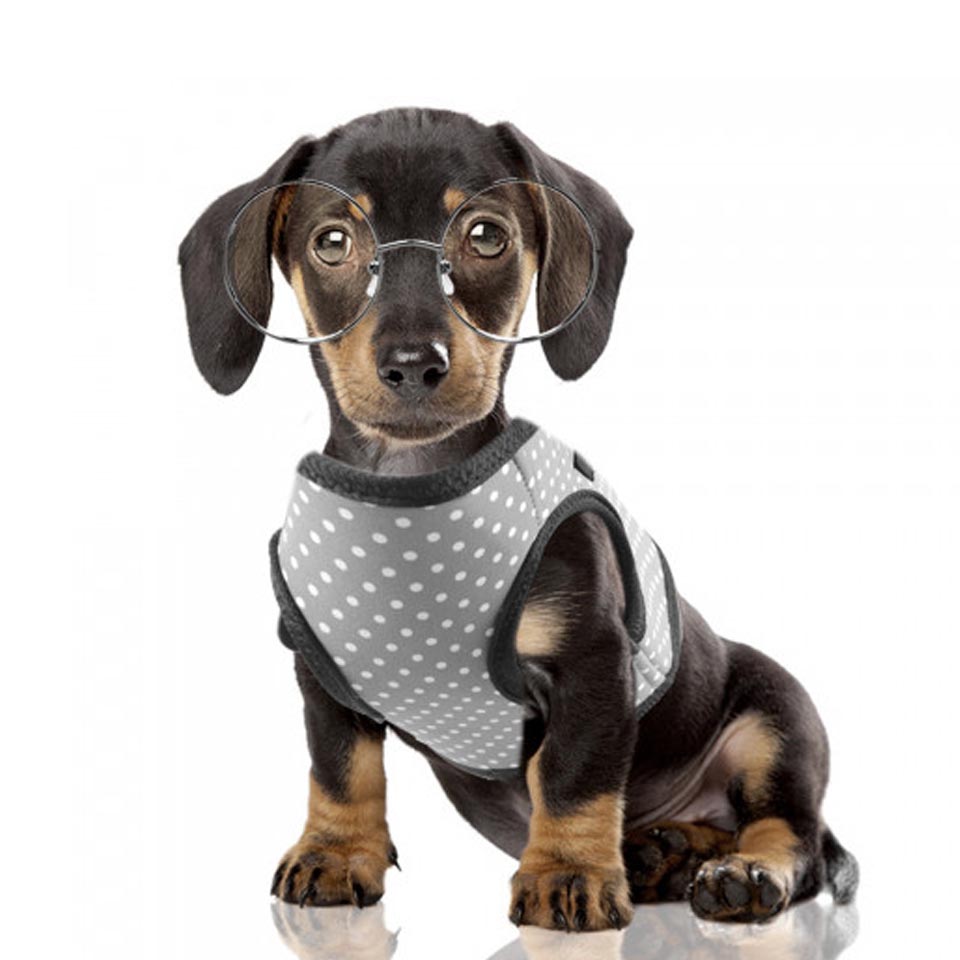NOOX® Modna oprsnica vest DOTS iz neoprena z modnim vzorcem. Je enostavna za upora in enostaven za čiščenje in se kužku odlično prilega in je udobna