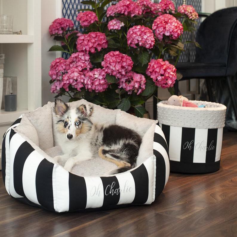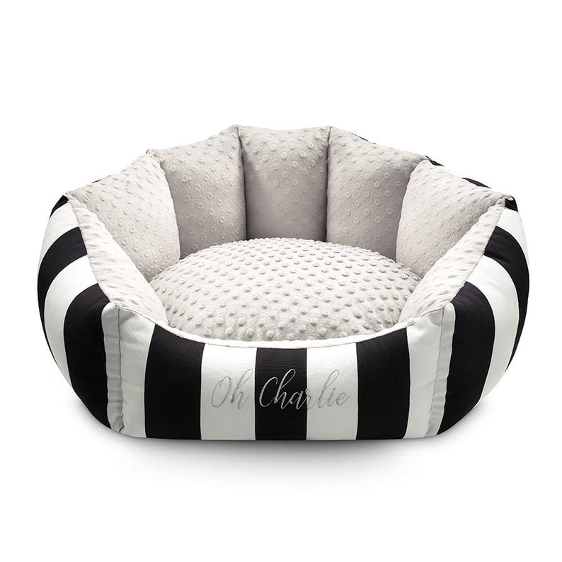Posteljica je narejena tako, da je za ljubljenčka mehka in udobna, njene mehke stene in blazina so napolnjene s silikonskimi kroglicami, ki se prilagajajo telesu vašega ljubljenčka in mu nudijo neverjetno udobje. Notranjost je narejena iz mehke odeje. Celotna posteljica je podložena z najkakovostnejšo tkanino z minimalističnim vzorcem v kontrastnih črtah.