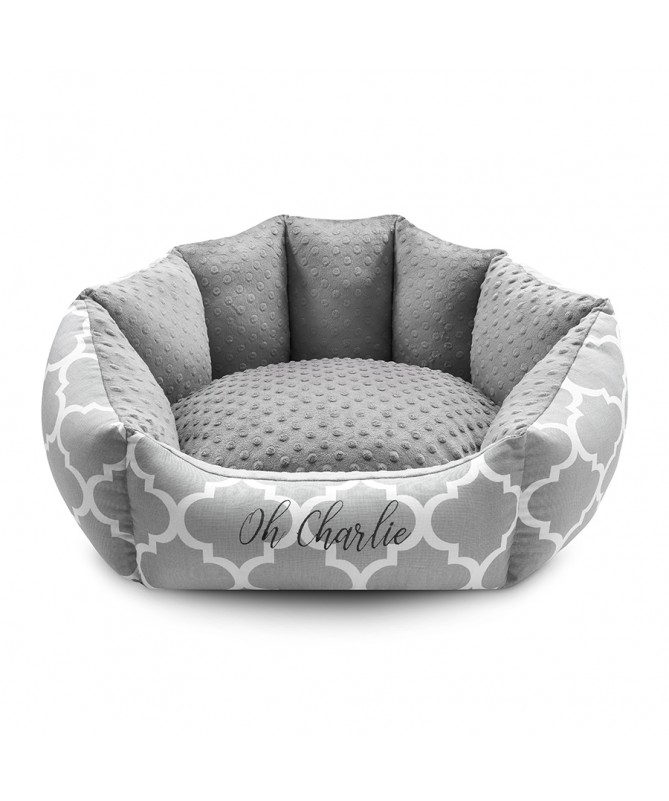Posteljica je narejena tako, da je za ljubljenčka mehka in udobna, njene mehke stene in blazina so napolnjene s silikonskimi kroglicami, ki se prilagajajo telesu vašega ljubljenčka in mu nudijo neverjetno udobje. Notranjost je narejena iz mehke odeje. Celotna posteljica je podložena z najkakovostnejšo tkanino z minimalističnim vzorcem v kontrastnih črtah.