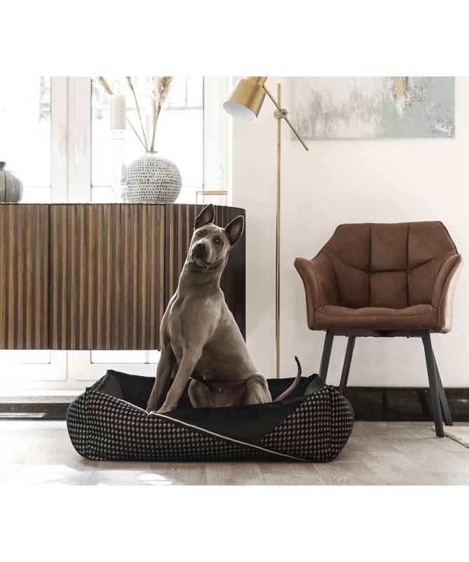 Posteljica je narejena tako, da je za ljubljenčka mehka in udobna, njene mehke stene in blazina so napolnjene s silikonskimi kroglicami, ki se prilagajajo telesu vašega ljubljenčka in mu nudijo neverjetno udobje. Notranjost je narejena iz mehke odeje. Celotna posteljica je podložena z najkakovostnejšo tkanino z minimalističnim vzorcem v kontrastnih črtah.