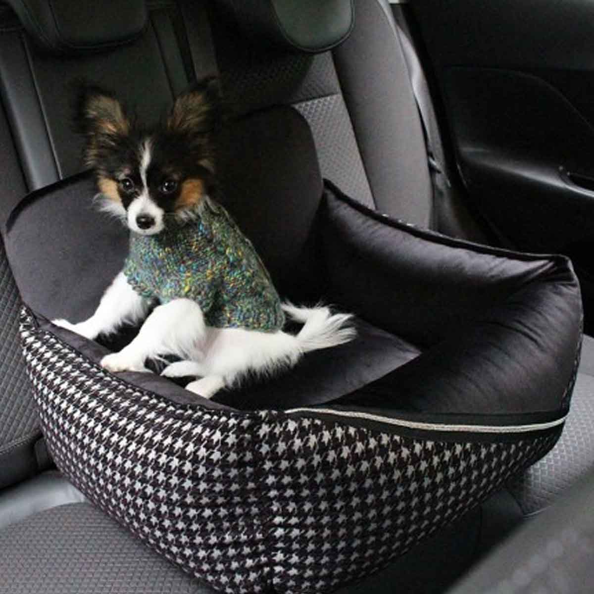 Ta razkošen avtosedež ne bo samo poudaril značaja notranjosti vašega vozila, temveč bo zagotovil tudi udobje in varnost vašega ljubljenčka. Zahvaljujoč višjim stranicam torbe, ki so napolnjene s silikonskimi kroglicami, bo vaš hišni ljubljenček lahko udobno potoval tudi ob ostrejših ovinkih. Pritrditev na varnostni pas in avtomobilski sedež bo preprečila premikanje torbe med zaviranjem, notranje pritrditve, pritrjene na pas ali mačji pas, pa mu bodo omogočile gibanje in dodaten oprijem pri nepričakovanem manevriranju vozila. Udobna blazina bo ustrezala telesu vašega hišnega ljubljenčka in mu nudila udobje, ki ga potrebuje na dolgi poti.