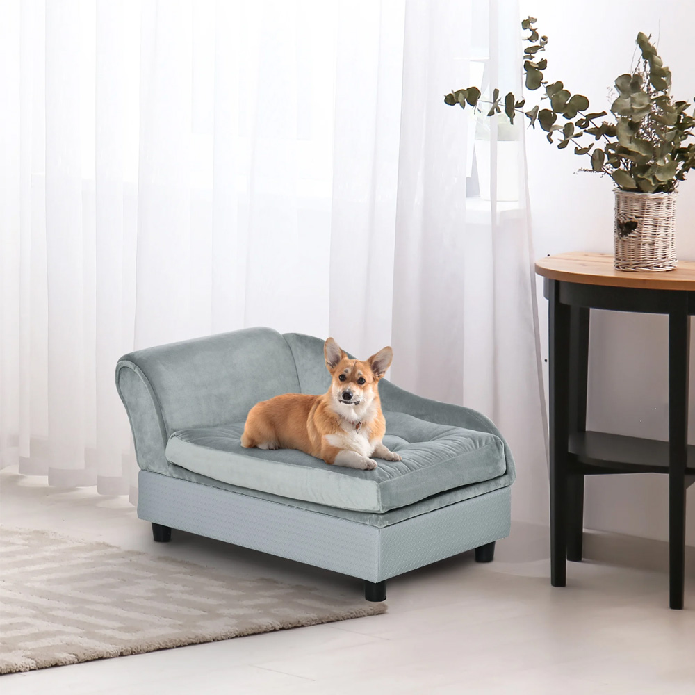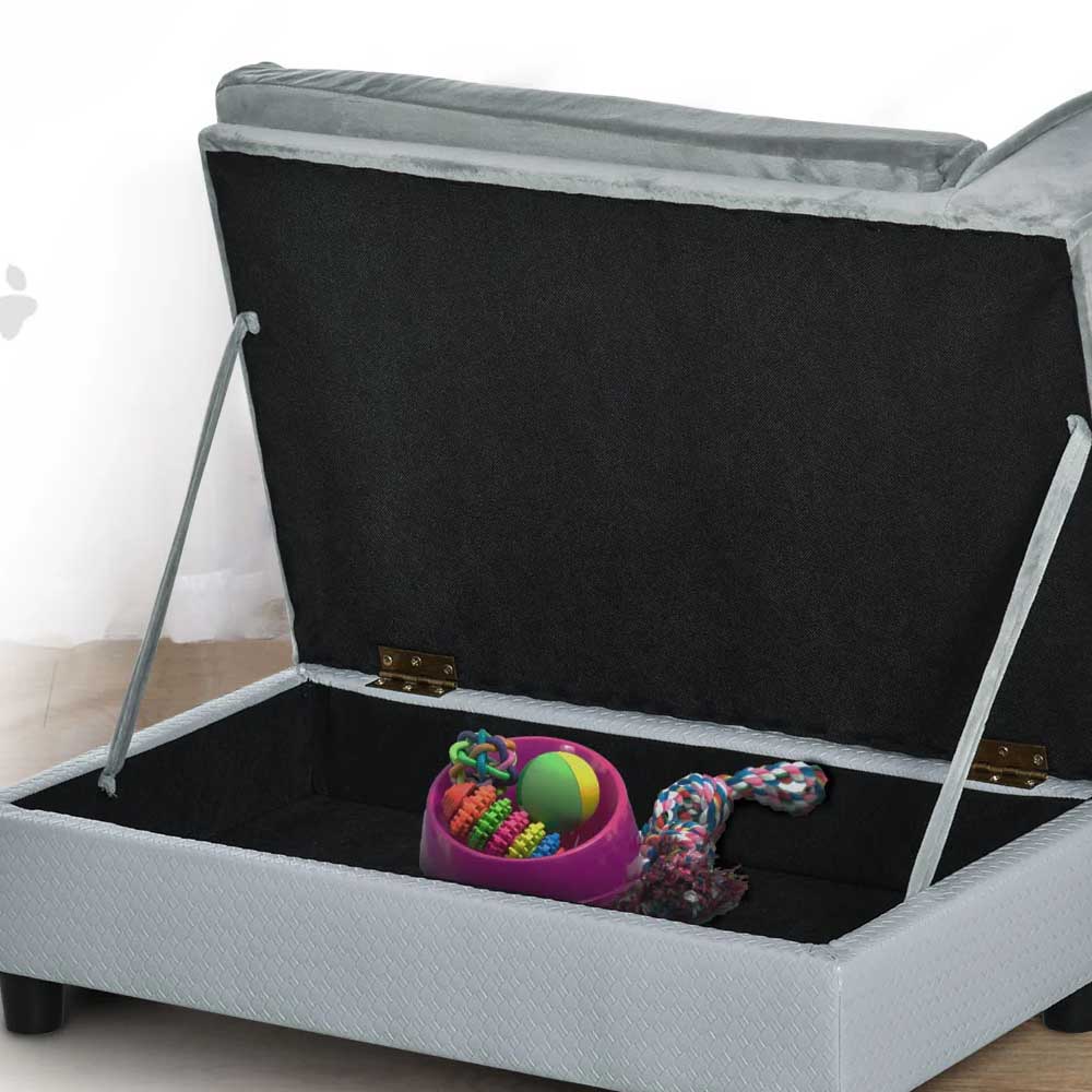 Poleg tega, da je kavč za hišne ljubljenčke, je uporaben tudi kot škatla za shranjevanje, v katero lahko pospravite zaloge za hišne ljubljenčke. Kavč ima debelo blazino, zaradi česar je zelo udobna in mehka. 4 noge na dnu ohranjajo kavč stabilen in posteljo dvignejo od tal. Sedež, ki ga bodo vaši prijatelji oboževali še leta.
