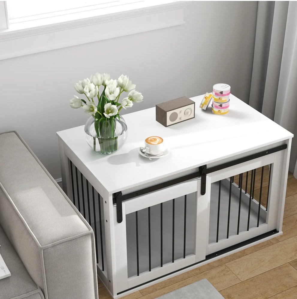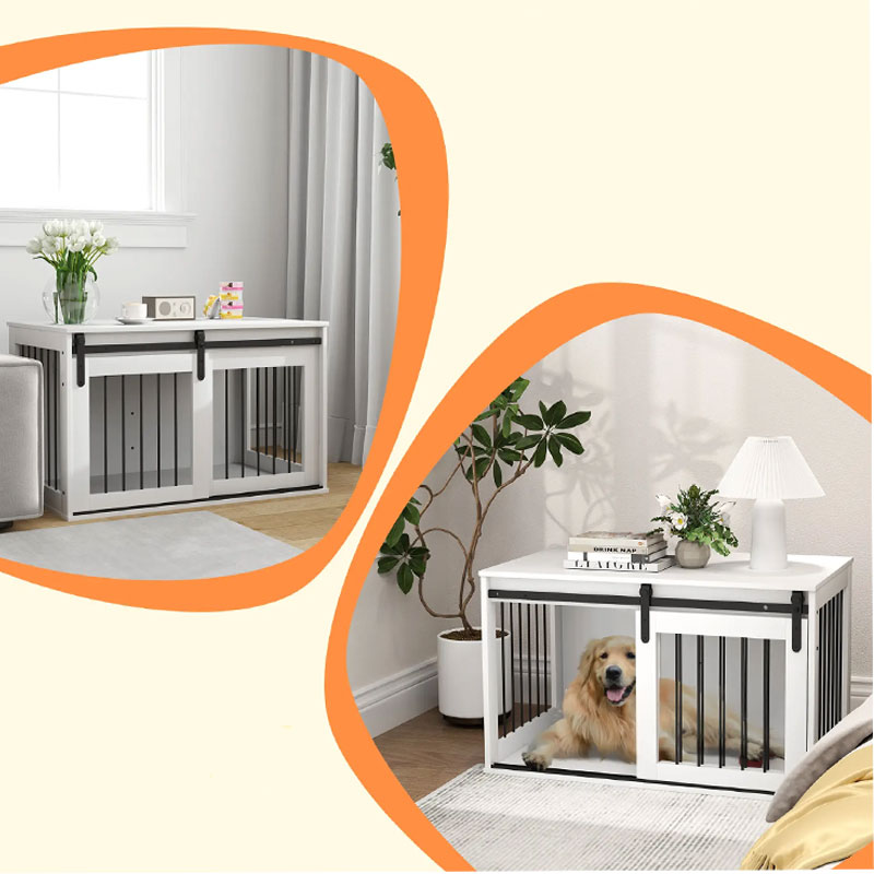 - Drsna vrata za lahkoten dostop: Velika vhodna odprtina z drsnimi vrati omogoča psu nemoten vstop in izstop. Brez zatikanja, brez stresa – samo udobje in eleganca.
