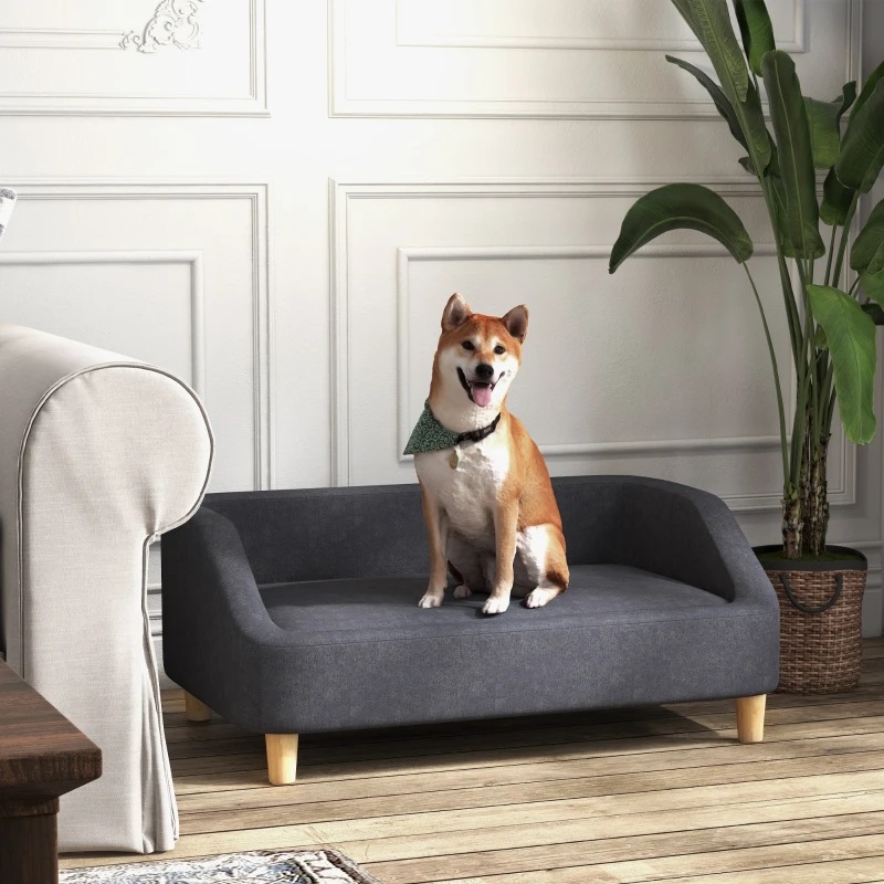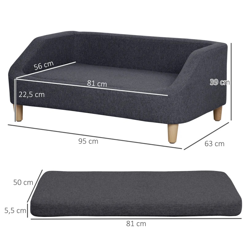 Elegantna sedežna garnitura za psa iz tkanine v sivi barvi je idealen prostor za spanje in počitek za pse ali mačke s stilom. Idealno za manjše ljubljenčke teže do 25 kg.