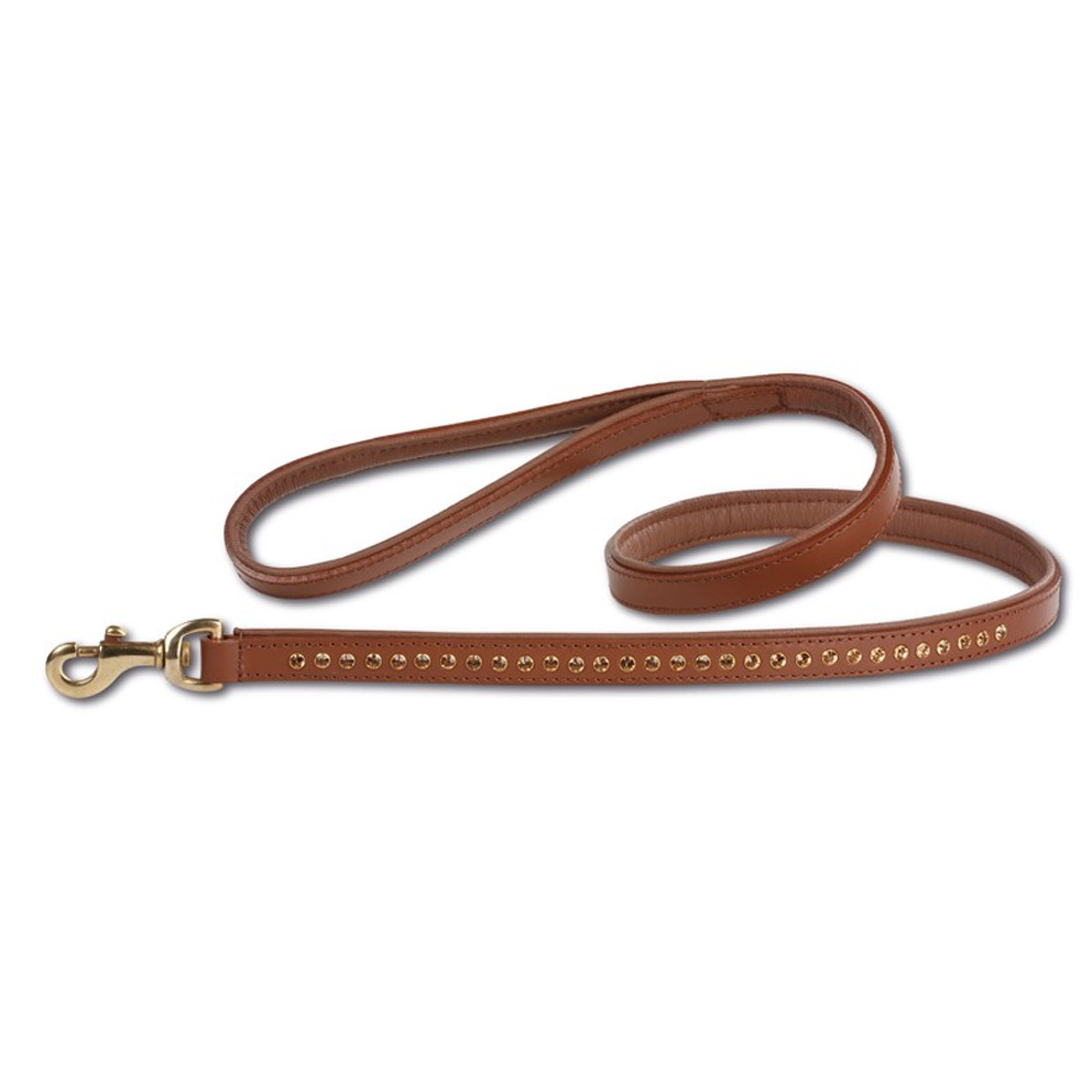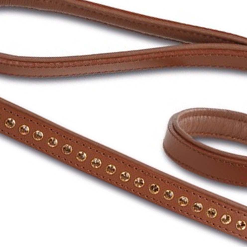 Swarovski Strass Extreme – povodec s Swarovski kamenčki iz pravega usnja – rjave barve, dolžina 120 cm